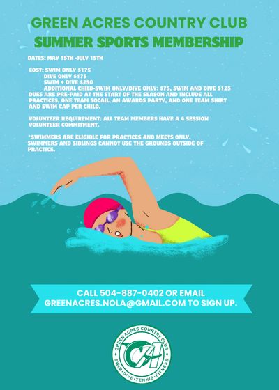 We also offer sports memberships for swim and dive teams. This allows non-members to join the teams with limited access to the club.